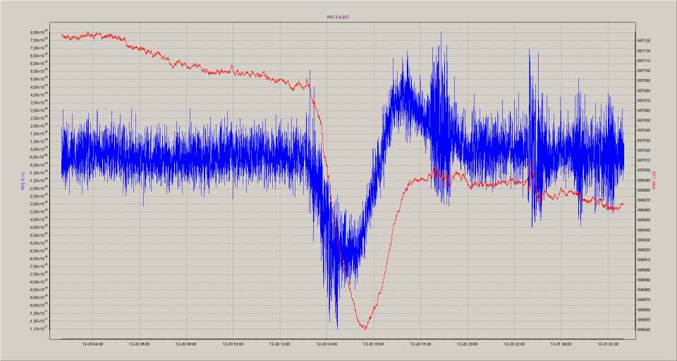 the Z3805 (blue: time difference between OCXO and GPS; red: EFC).