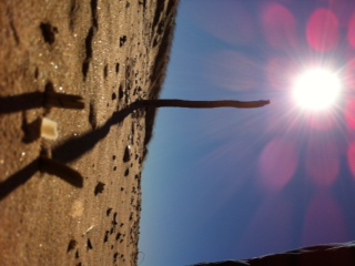 I'm very south of the equator on a family vacation right now, away from my lab, remote enough to miss the upcoming leap second. But here's a photo of a sundial I made with driftwood and shell markers every 5 minutes.