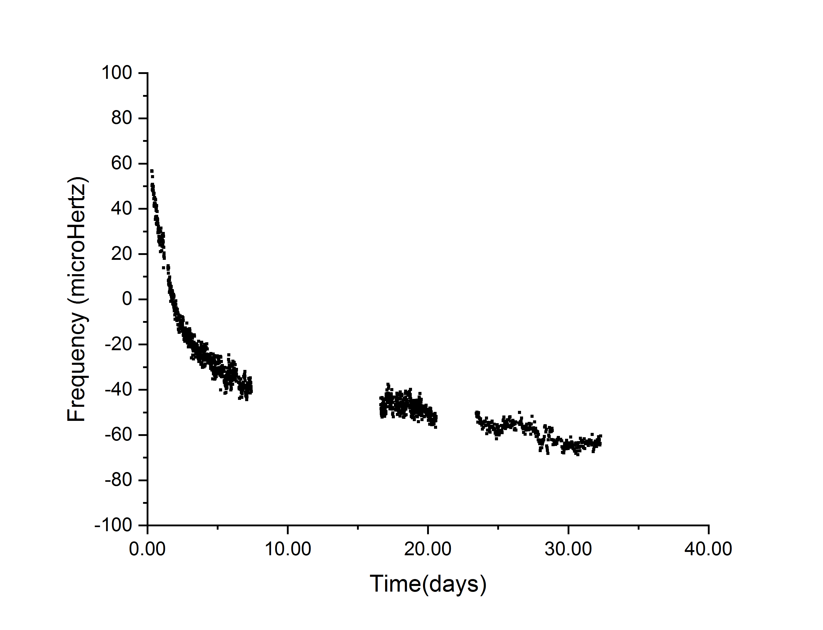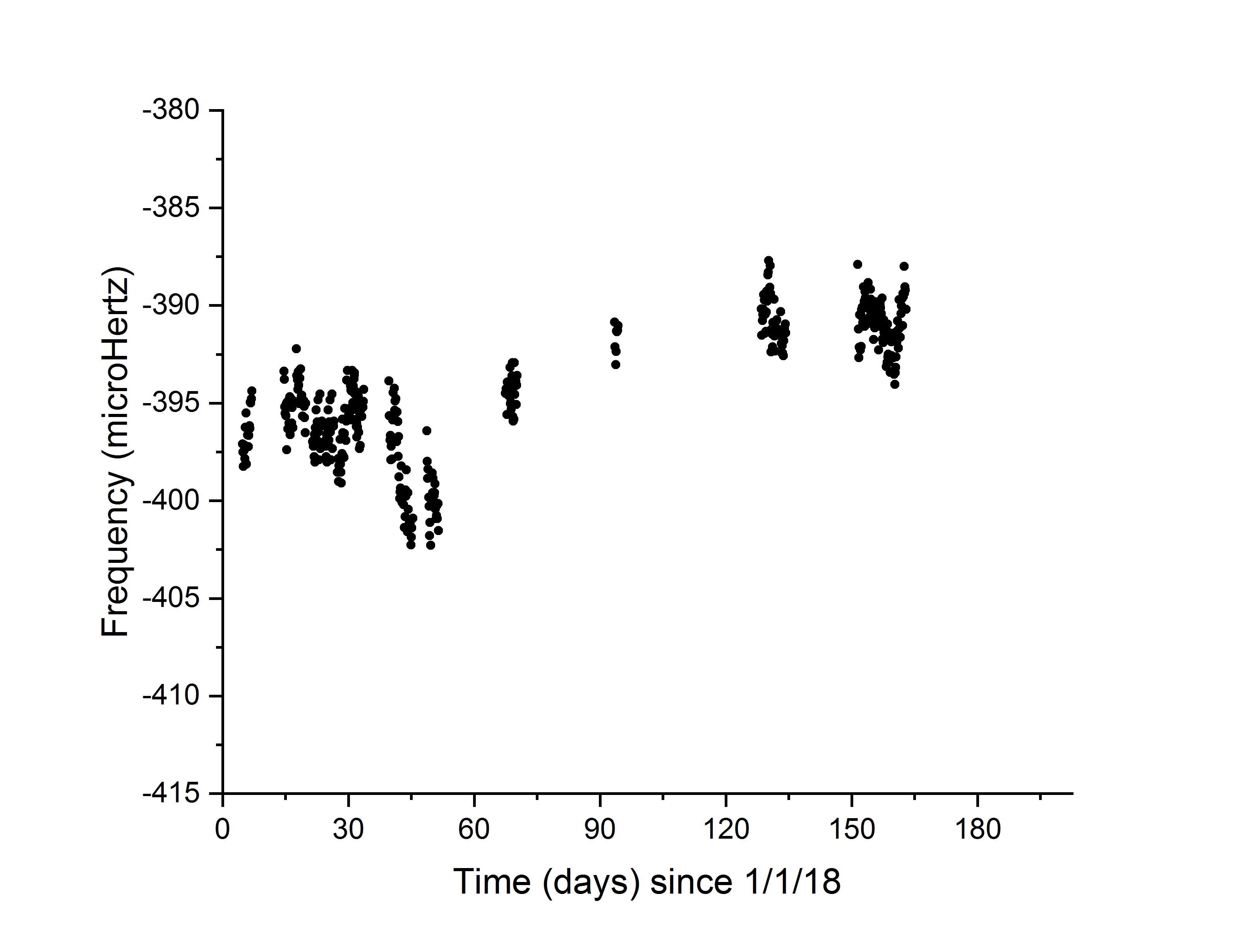 roughly 5 microHertz in 5 months. The measurements were made at 10 MHz, so