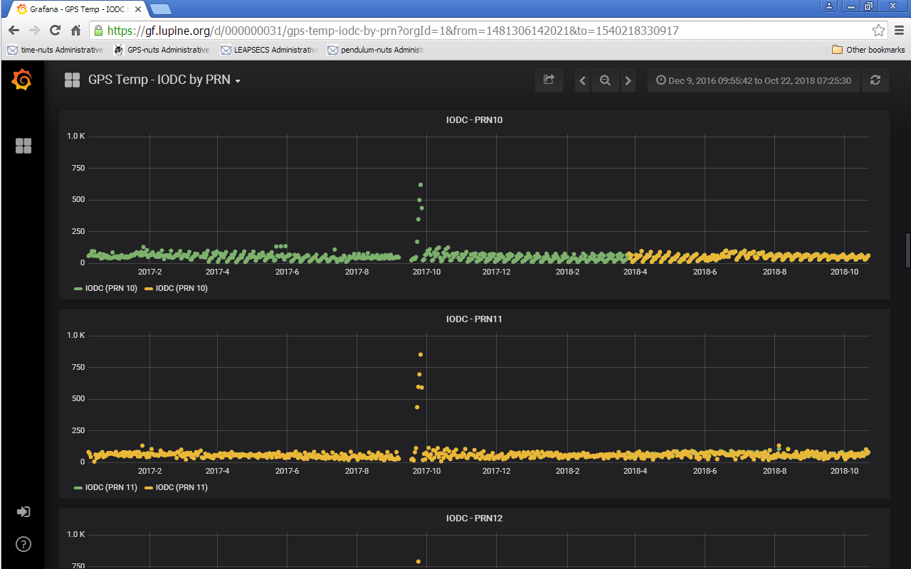 For example, the most recent one I remember was the GPS Almanac / IODC / SkyTraq event of September 2017. Attached is an image from fellow time nut J. Grizzard's logging system showing that event a year ago.