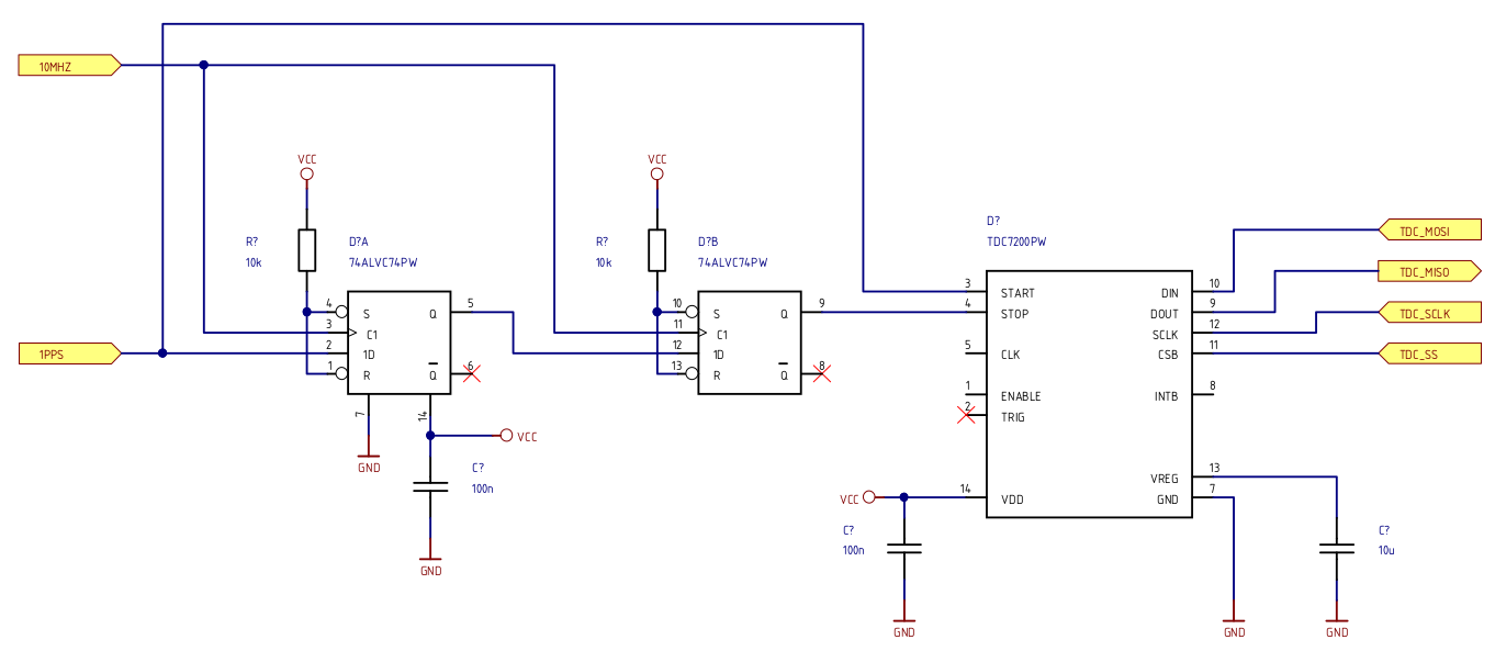 OK so the TDC7200 measures the phase difference between the 10MHz and the 1PPS. To measure the actual frequency, the 1PPS will be used on an input capture of a microcontroller (STM32F407 or something).