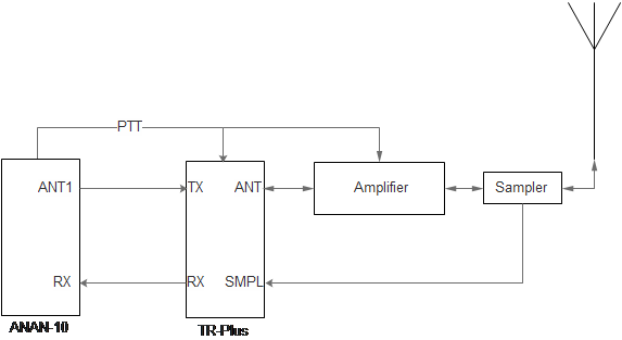 This is how I connect things to use TR-Plus with an ANAN-10 radio and external 100W amplifier: