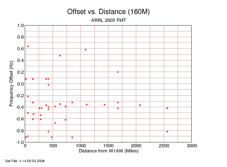 The ARRL was gracious enough to give me the raw data for the 2005 Frequency Measuring Test (scrubbed to protect the privacy of the entrants). I've started to do some analysis, and the results are here. This is a work in progress, so expect updates.